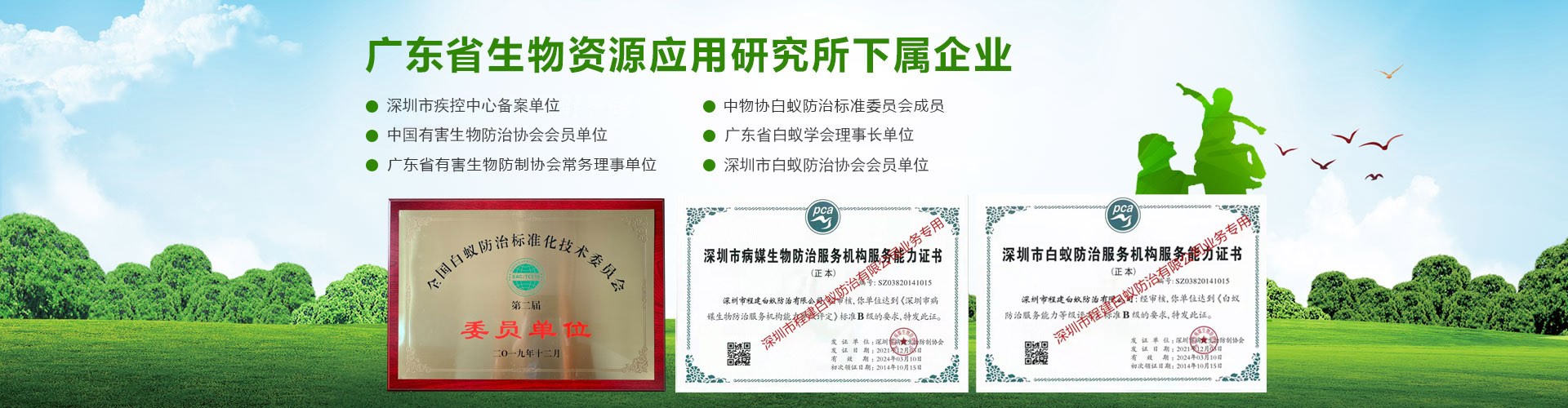 深圳市程建白蟻防治中心有限公司(深圳市白蟻防治中心、深圳市殺白蟻公司、滅白蟻公司、治白蟻公司、除白蟻公司、防白蟻公司、深圳市消殺公司、深圳市殺蟲公司)、于二00二年十一月成立。是經(jīng)深圳市政府有關(guān)部門批準(zhǔn),市工商行政管理局注冊登記的法人企業(yè),深圳市蟲鼠防治協(xié)會(PCO)成員單位,持有政府部門頒發(fā)“白蟻防治服務(wù)機(jī)構(gòu)服務(wù)能力證書B級”、“有害生物防制服務(wù)機(jī)構(gòu)服務(wù)能力證書B級”雙資質(zhì)證書的有害生物防治單位。公司主要服務(wù)政府、事業(yè)、企業(yè)、工廠、賓館、園林、小區(qū)、大廈等單位的白蟻防治、有害生物防制施工的專業(yè)機(jī)構(gòu)。技術(shù)力量雄厚,擁有各層次專業(yè)技術(shù)人員三十多名。